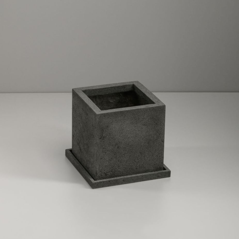 Кашпо напольное «Evabrick Cube» из полимербетона для цветов и декоративных растений объёмом 20 литров, размером 30 на 30 см, весом 11 кг, в форме куба серого цвета c поддоном.