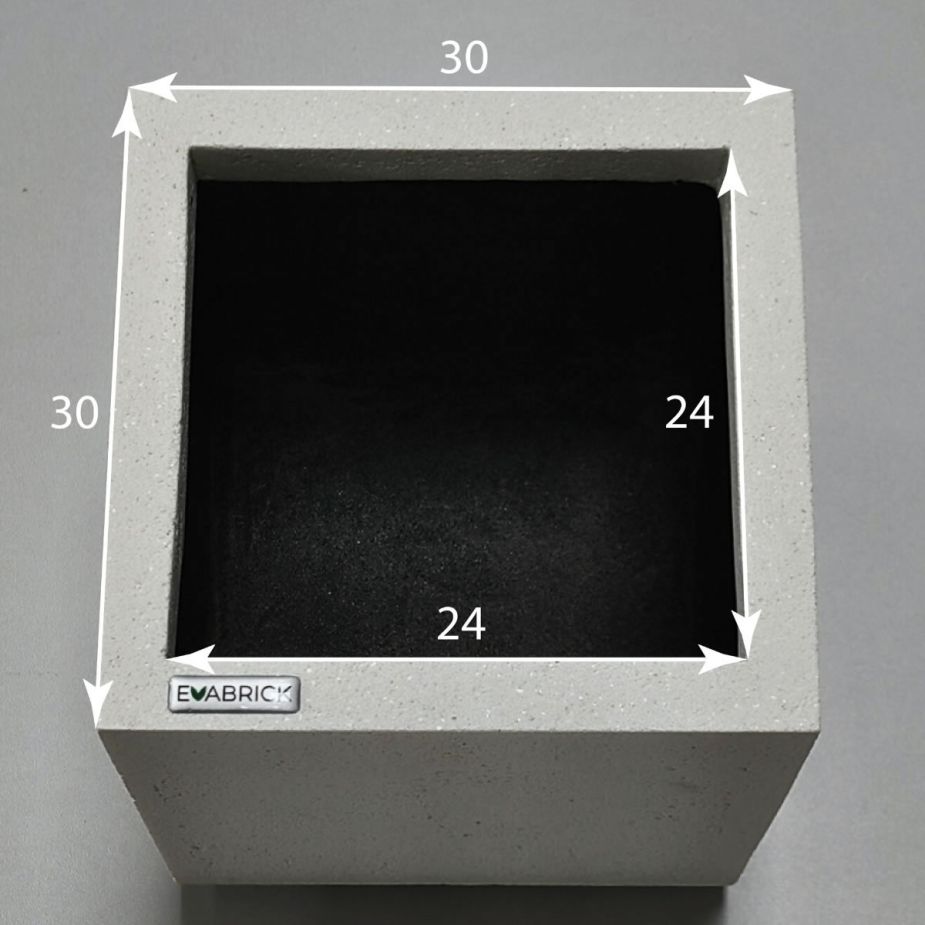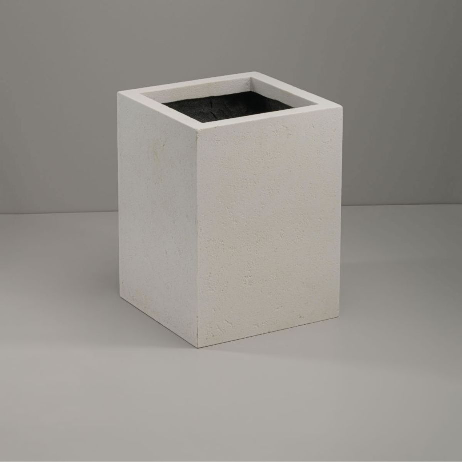 Кашпо напольное «Evabrick Cube» из полимербетона для цветов и декоративных растений объёмом 29 литров, размером 40 на 30 см, весом 10 кг, в форме куба белого цвета.