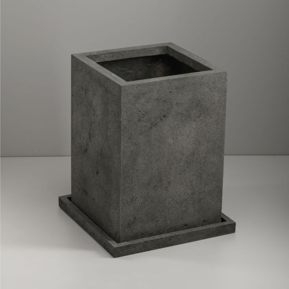Кашпо напольное «Evabrick Cube» из полимербетона для цветов и декоративных растений объёмом 51 литр, размером 50 на 35 см, весом 17,5 кг, в форме куба серого цвета c поддоном.