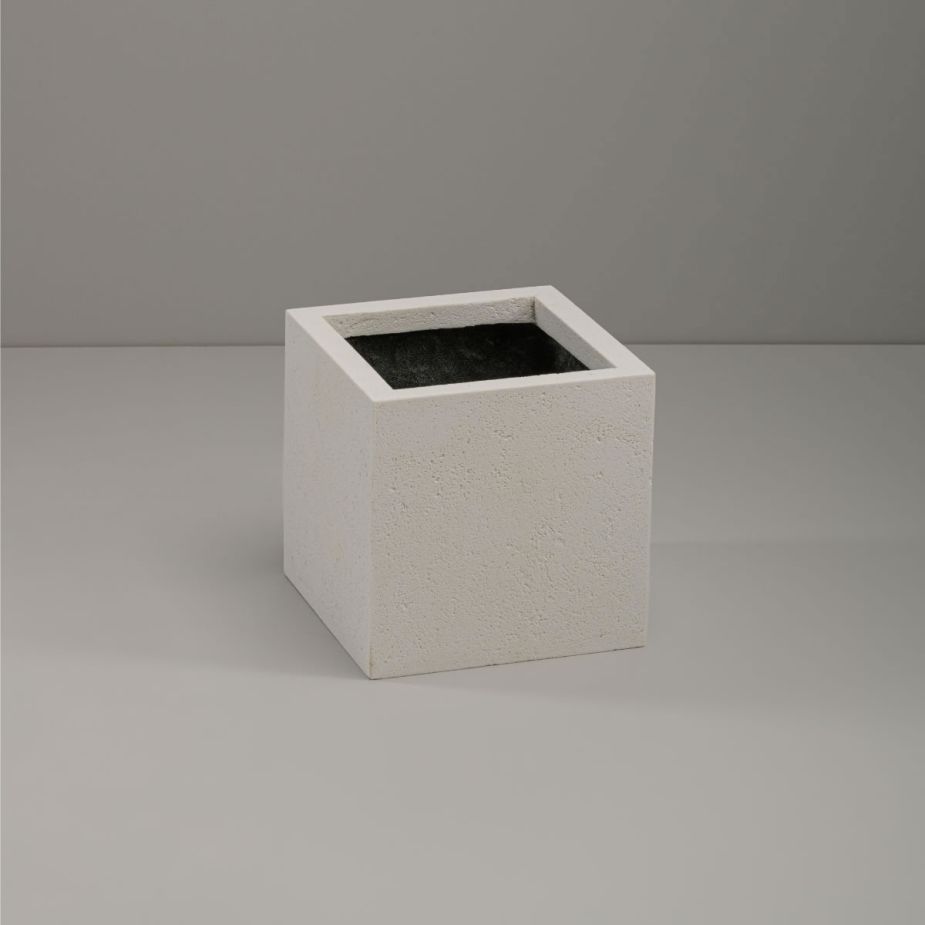 Кашпо напольное «Evabrick Cube» из полимербетона для цветов и декоративных растений объёмом 5 литров, размером 20 на 20 см, весом 4 кг, в форме куба белого цвета.
