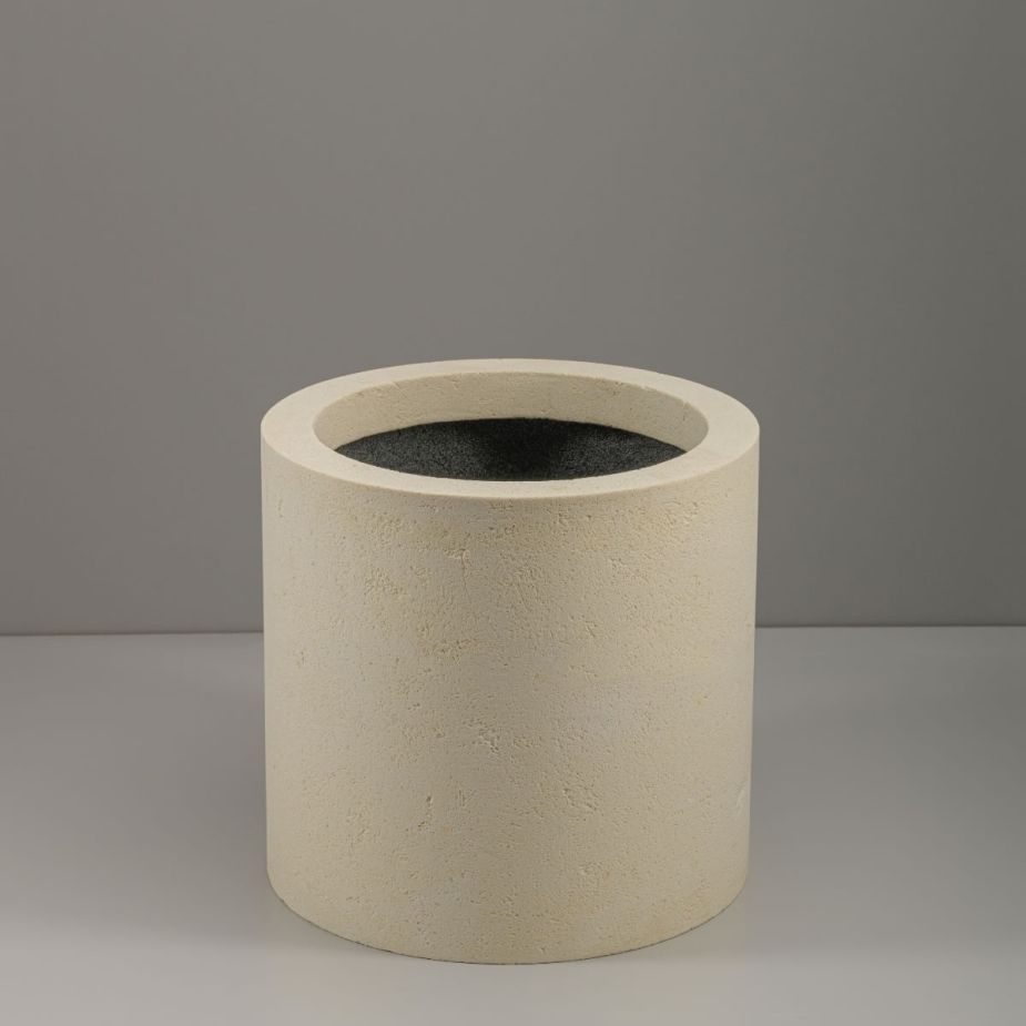 Кашпо напольное «Evabrick Cylinder» из полимербетона для цветов и декоративных растений объёмом 17 литров, размером 30 на 30 см, весом 6 кг, в форме цилиндра бежевого цвета.