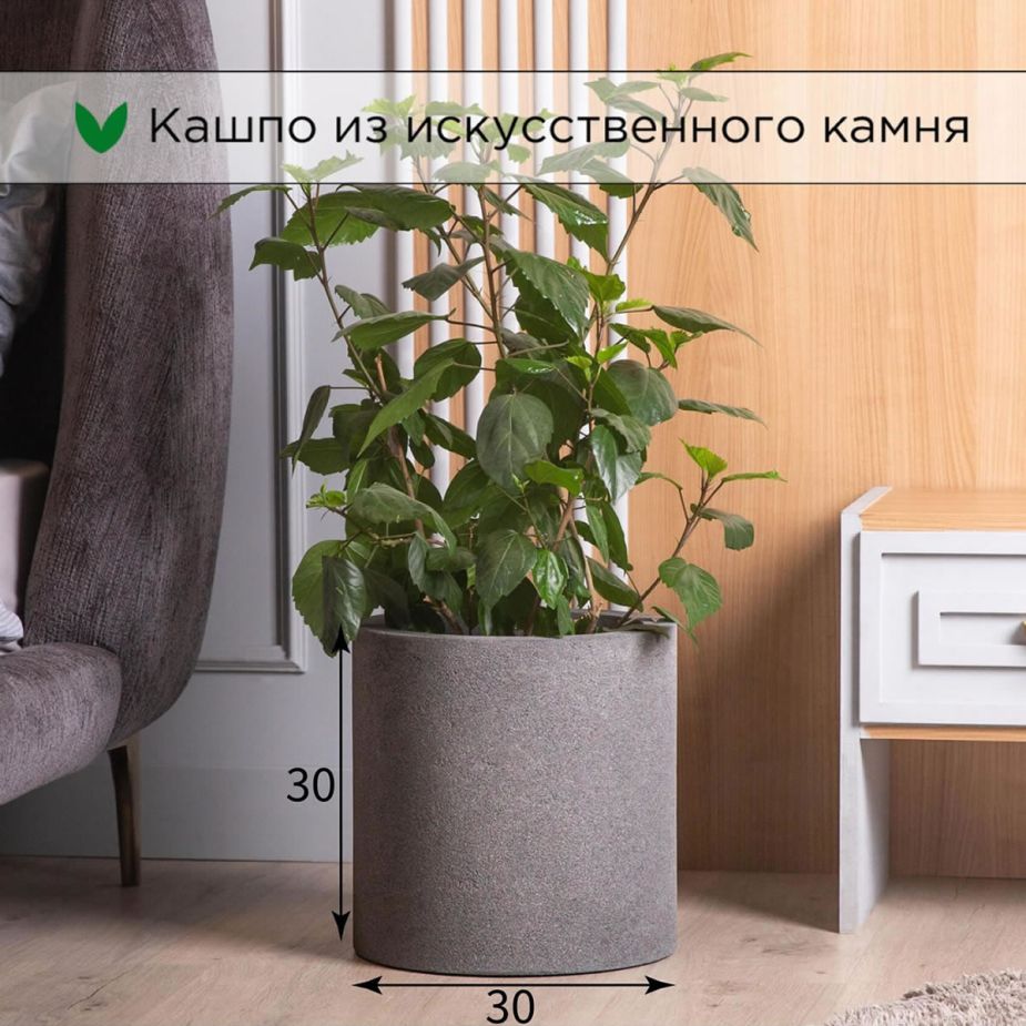 Кашпо напольное «Evabrick Cylinder» из полимербетона для цветов и декоративных растений объёмом 17 литров, размером 30 на 30 см, весом 6 кг, в форме цилиндра серого цвета.