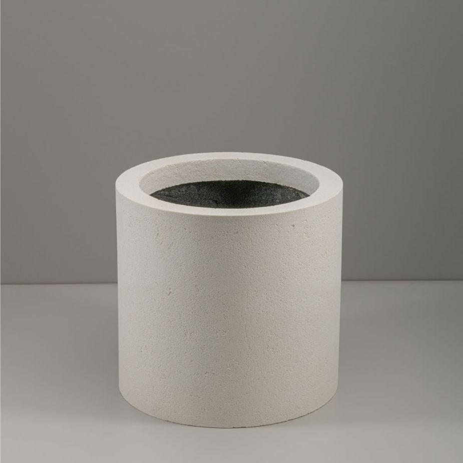 Кашпо напольное «Evabrick Cylinder» из полимербетона для цветов и декоративных растений объёмом 17 литров, размером 30 на 30 см, весом 9 кг, в форме цилиндра белого цвета с поддоном.