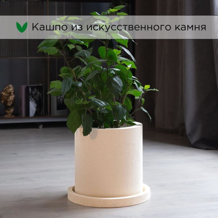 Кашпо напольное «Evabrick Cylinder» из полимербетона для цветов и декоративных растений объёмом 17 литров, размером 30 на 30 см, весом 9 кг, в форме цилиндра бежевого цвета с поддоном.