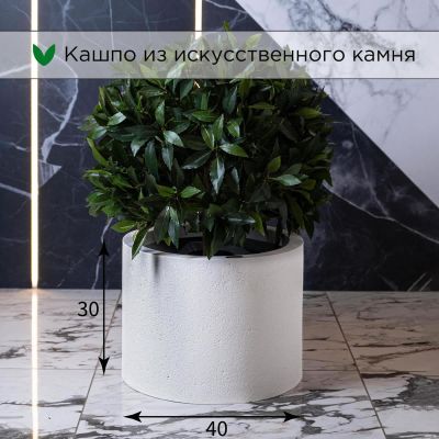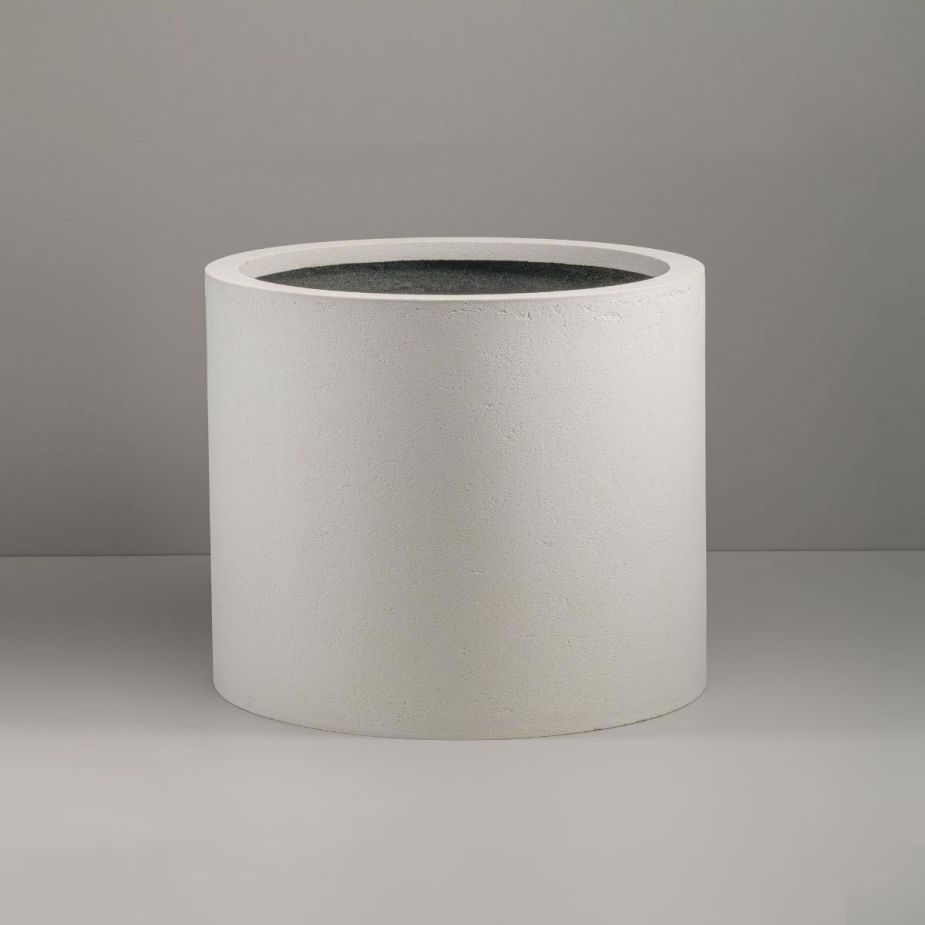 Кашпо напольное «Evabrick Cylinder» из полимербетона для цветов и декоративных растений объёмом 31 литр, размером 30 на 40 см, весом 9 кг, в форме цилиндра белого цвета.