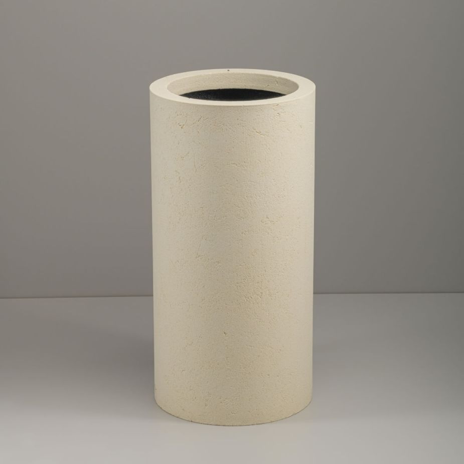 Кашпо напольное «Evabrick Cylinder» из полимербетона для цветов и декоративных растений объёмом 33 литра, размером 60 на 30 см, весом 12 кг, в форме цилиндра бежевого цвета.