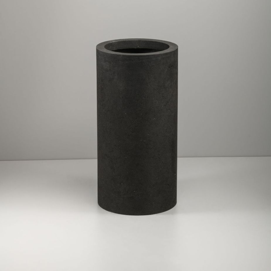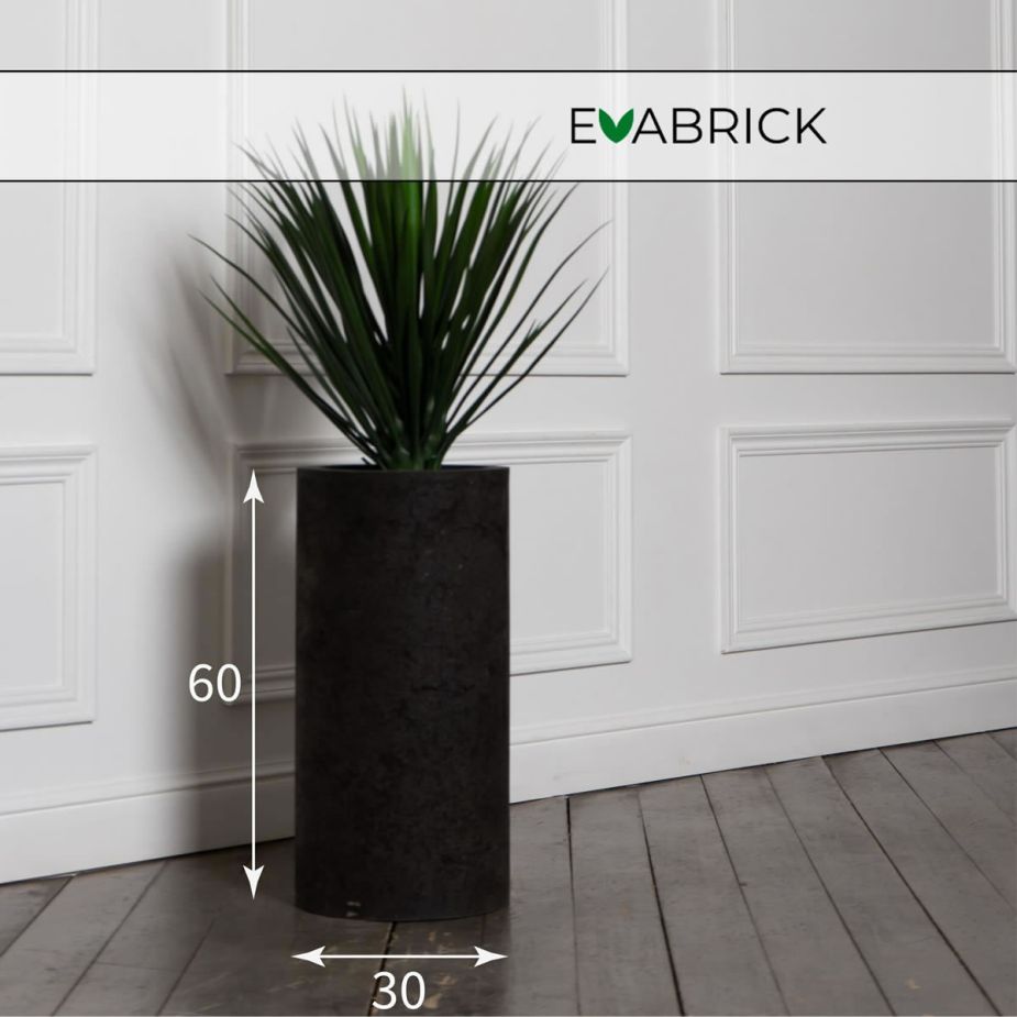 Кашпо напольное «Evabrick Cylinder» из полимербетона для цветов и декоративных растений объёмом 33 литра, размером 60 на 30 см, весом 12 кг, в форме цилиндра чёрного цвета.