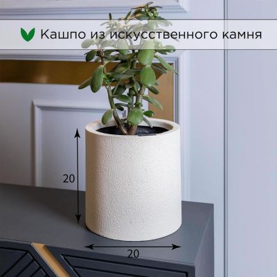 Кашпо напольное «Evabrick Cylinder» из полимербетона для цветов и декоративных растений объёмом 5 литров, размером 20 на 20 см, весом 2,5 кг, в форме цилиндра бежевого цвета.
