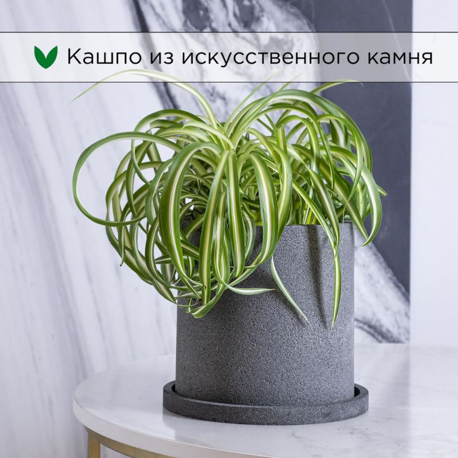 Кашпо напольное «Evabrick Cylinder» из полимербетона для цветов и декоративных растений объёмом 5 литров, размером 20 на 20 см, весом 3,5 кг, в форме цилиндра серого цвета c поддоном.