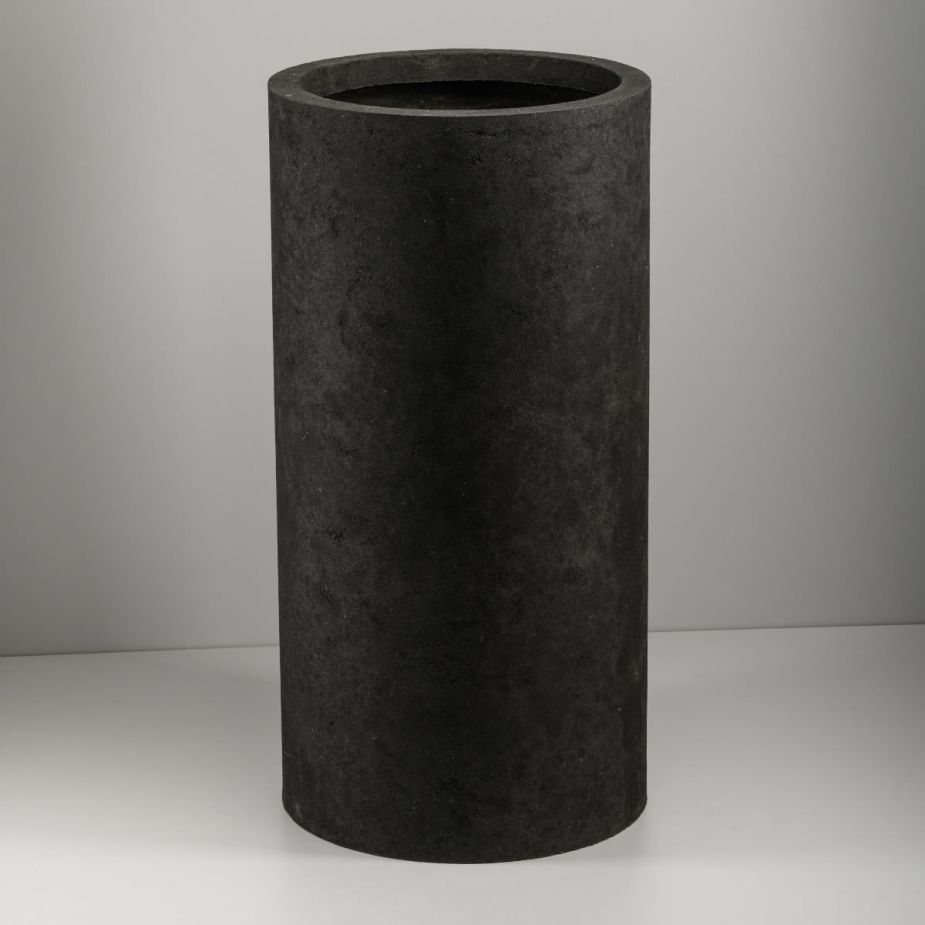 Кашпо напольное «Evabrick Cylinder» из полимербетона для цветов и декоративных растений объёмом 84 литра, размером 80 на 40 см, весом 23 кг, в форме цилиндра чёрного цвета.