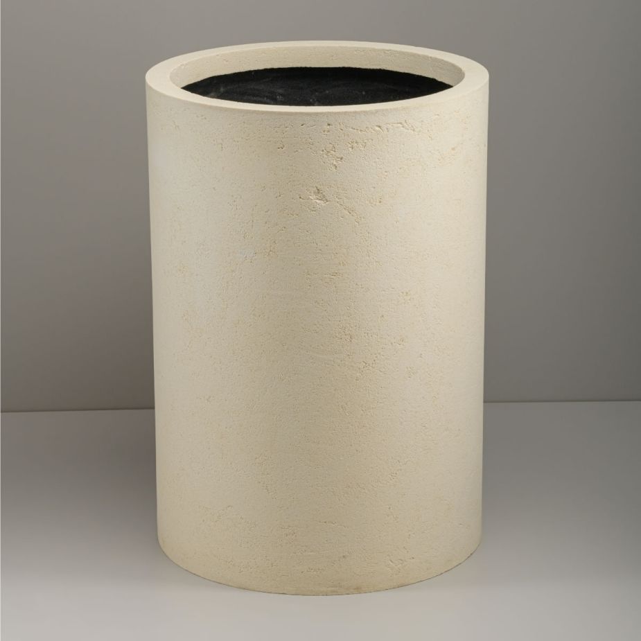 Кашпо напольное «Evabrick Cylinder» из полимербетона для цветов и декоративных растений объёмом 86 литров, размером 65 на 45 см, весом 20 кг, в форме цилиндра бежевого цвета.
