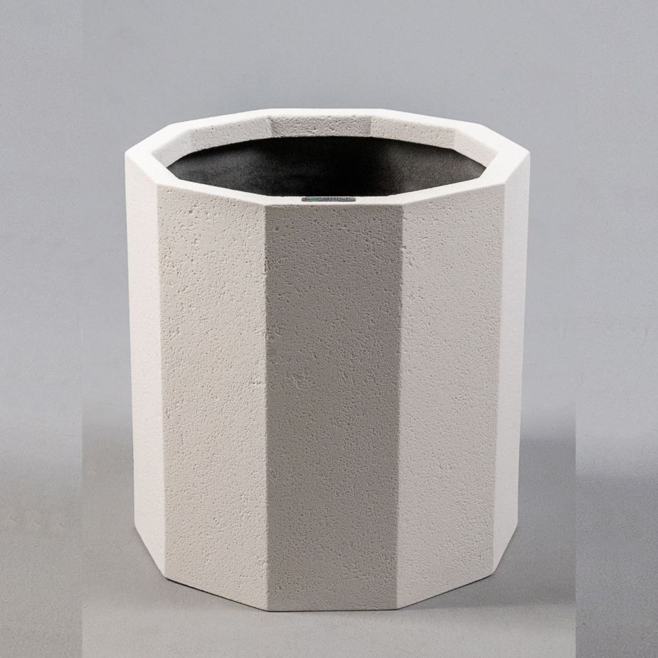 Кашпо напольное «Evabrick Prizma» из полимербетона для цветов и декоративных растений объёмом 16 литров, размером 30 на 30 см, весом 6 кг, в форме призмы белого цвета.