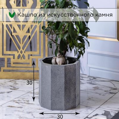 Кашпо напольное «Evabrick Prizma» из полимербетона для цветов и декоративных растений объёмом 16 литров, размером 30 на 30 см, весом 6 кг, в форме призмы серого цвета.