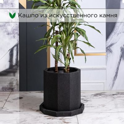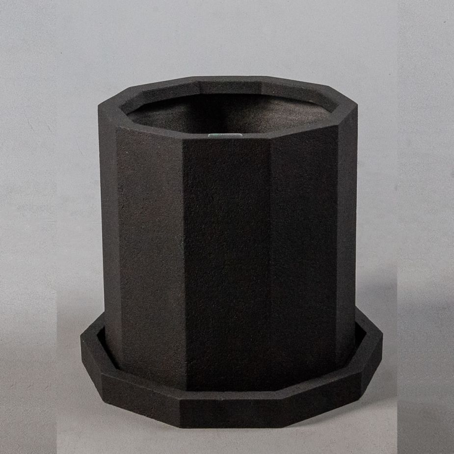 Кашпо напольное «Evabrick Prizma» из полимербетона для цветов и декоративных растений объёмом 16 литров, размером 30 на 30 см, весом 9 кг, в форме призмы чёрного цвета с поддоном.