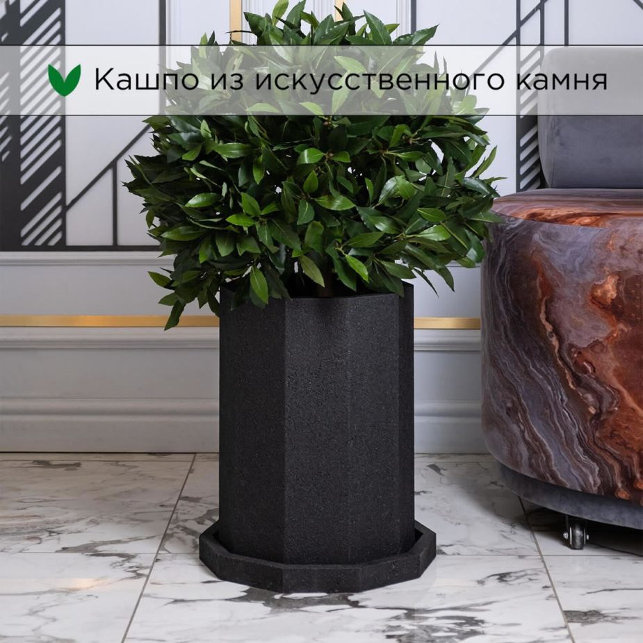 Кашпо напольное «Evabrick Prizma» из полимербетона для цветов и декоративных растений объёмом 30 литров, размером 40 на 30 см, весом 11 кг, в форме призмы чёрного цвета с поддоном.