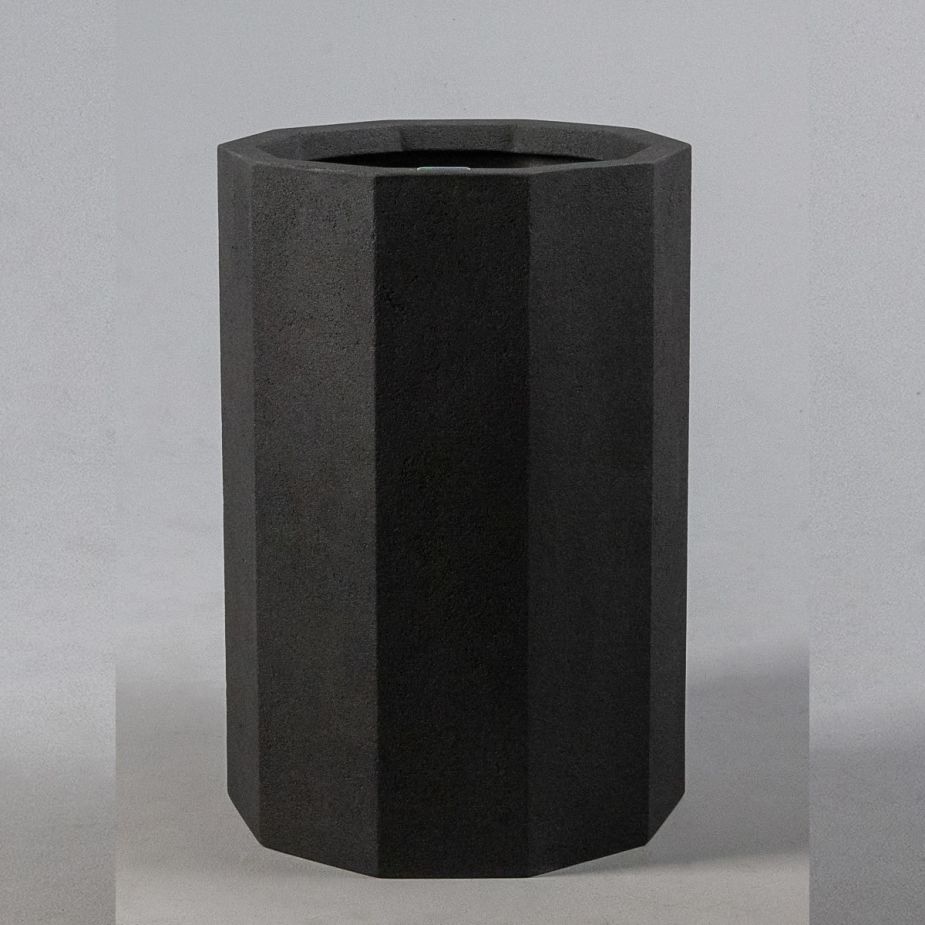 Кашпо напольное «Evabrick Prizma» из полимербетона для цветов и декоративных растений объёмом 36 литров, размером 50 на 35 см, весом 12 кг, в форме призмы чёрного цвета.