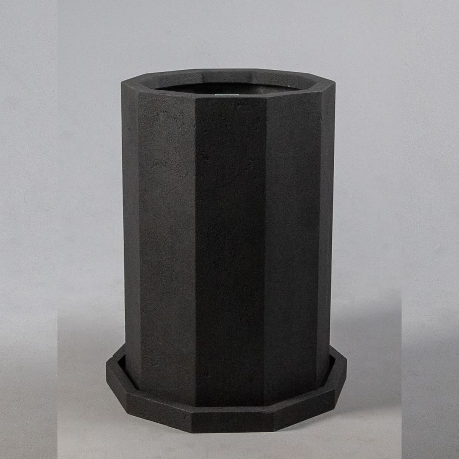 Кашпо напольное «Evabrick Prizma» из полимербетона для цветов и декоративных растений объёмом 36 литров, размером 50 на 35 см, весом 15,5 кг, в форме призмы чёрного цвета с поддоном.
