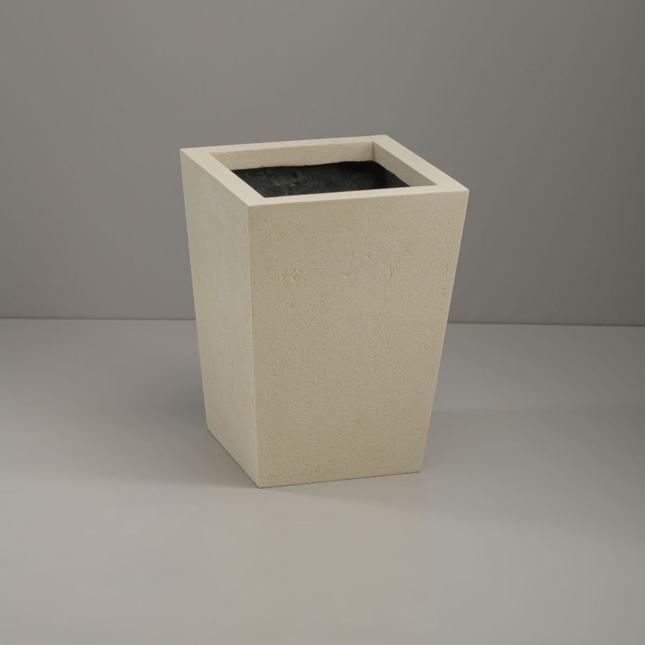 Кашпо напольное «Evabrick Pyramid» из полимербетона для цветов и декоративных растений объёмом 22 литра, размером 40 на 30 см, весом 8 кг, в форме пирамиды бежевого цвета.