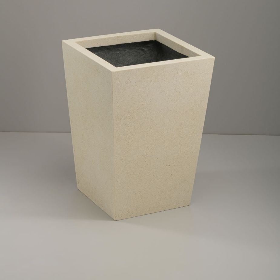 Кашпо напольное «Evabrick Pyramid» из полимербетона для цветов и декоративных растений объёмом 39 литров, размером 50 на 35 см, весом 14 кг, в форме пирамиды бежевого цвета.