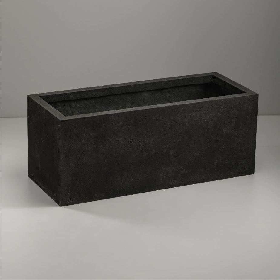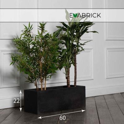 Кашпо напольное «Evabrick Rectangle» из полимербетона для цветов и декоративных растений объёмом 22 литра, размером 22 на 60 см, весом 10 кг, в форме прямоугольника чёрного цвета.