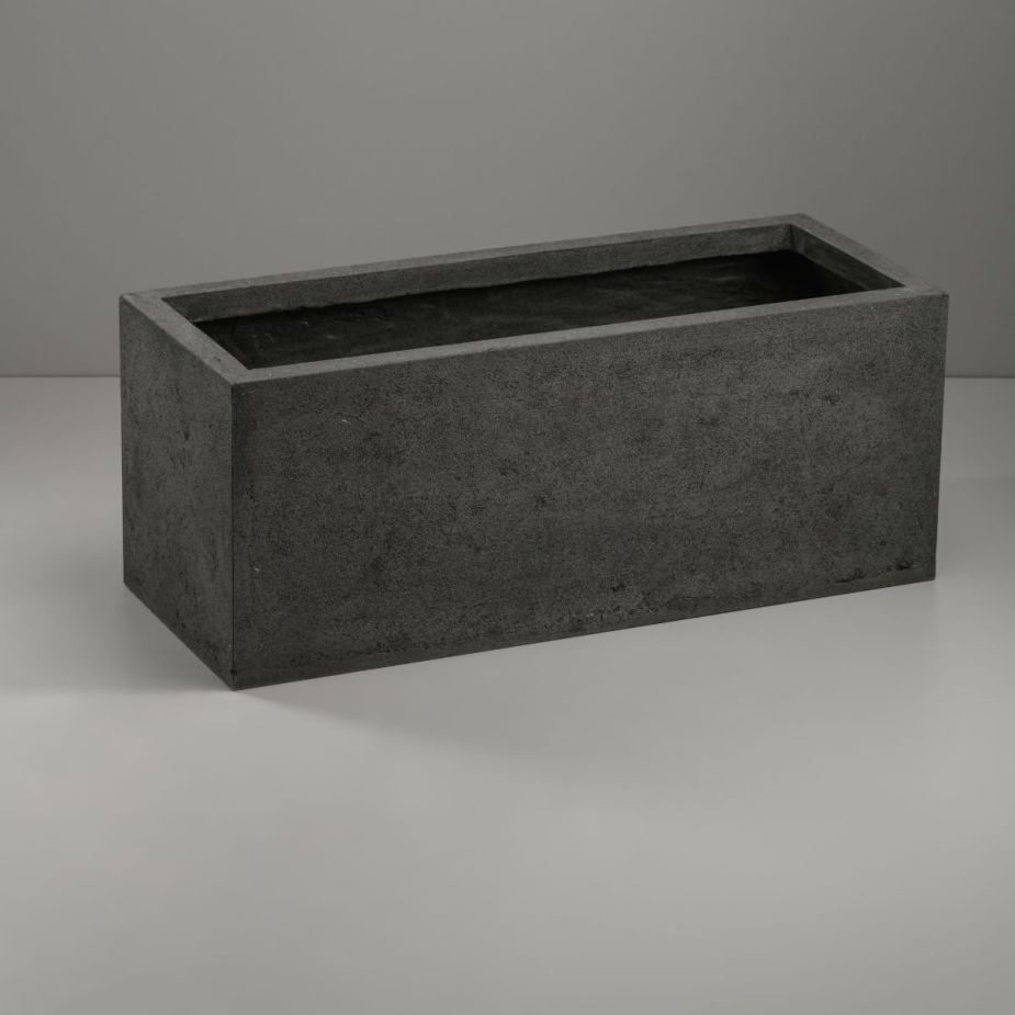 Кашпо напольное «Evabrick Rectangle» из полимербетона для цветов и декоративных растений объёмом 22 литра, размером 22 на 60 см, весом 10 кг, в форме прямоугольника серого цвета.