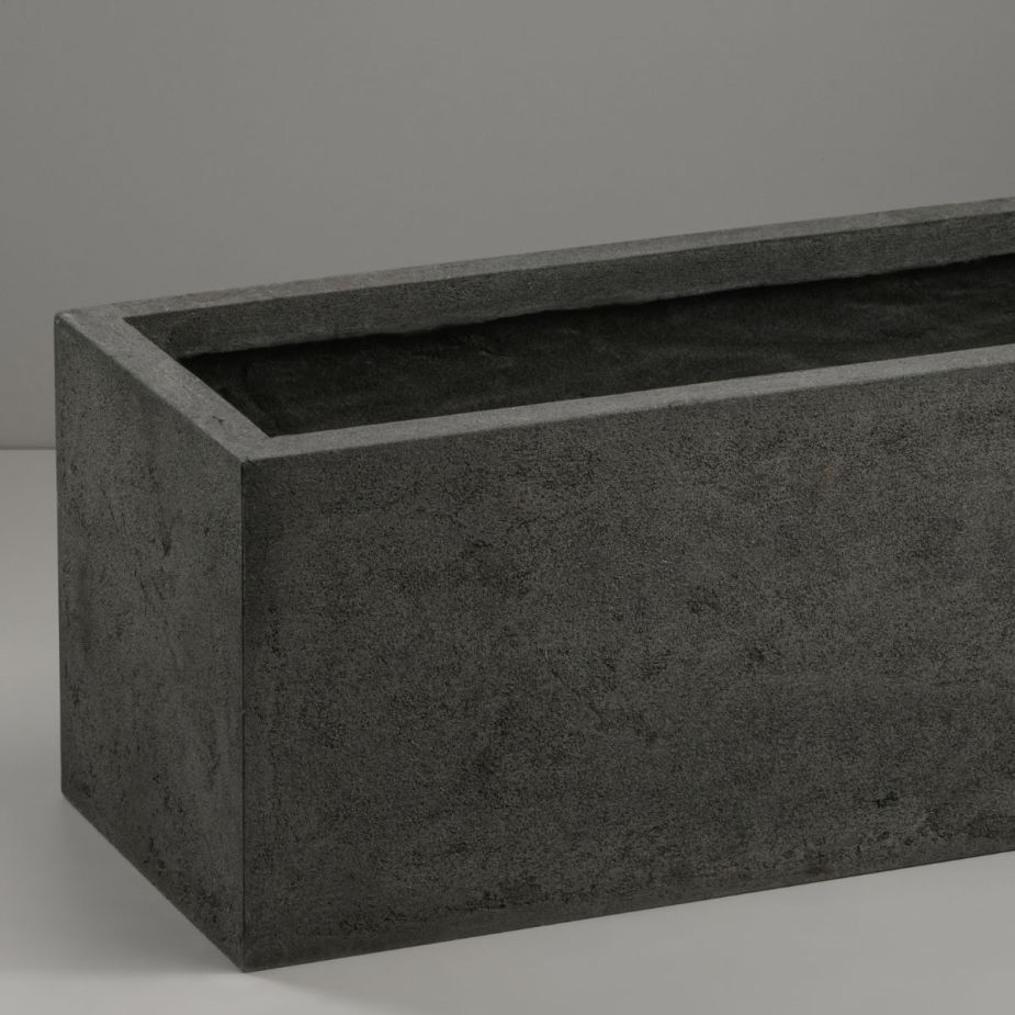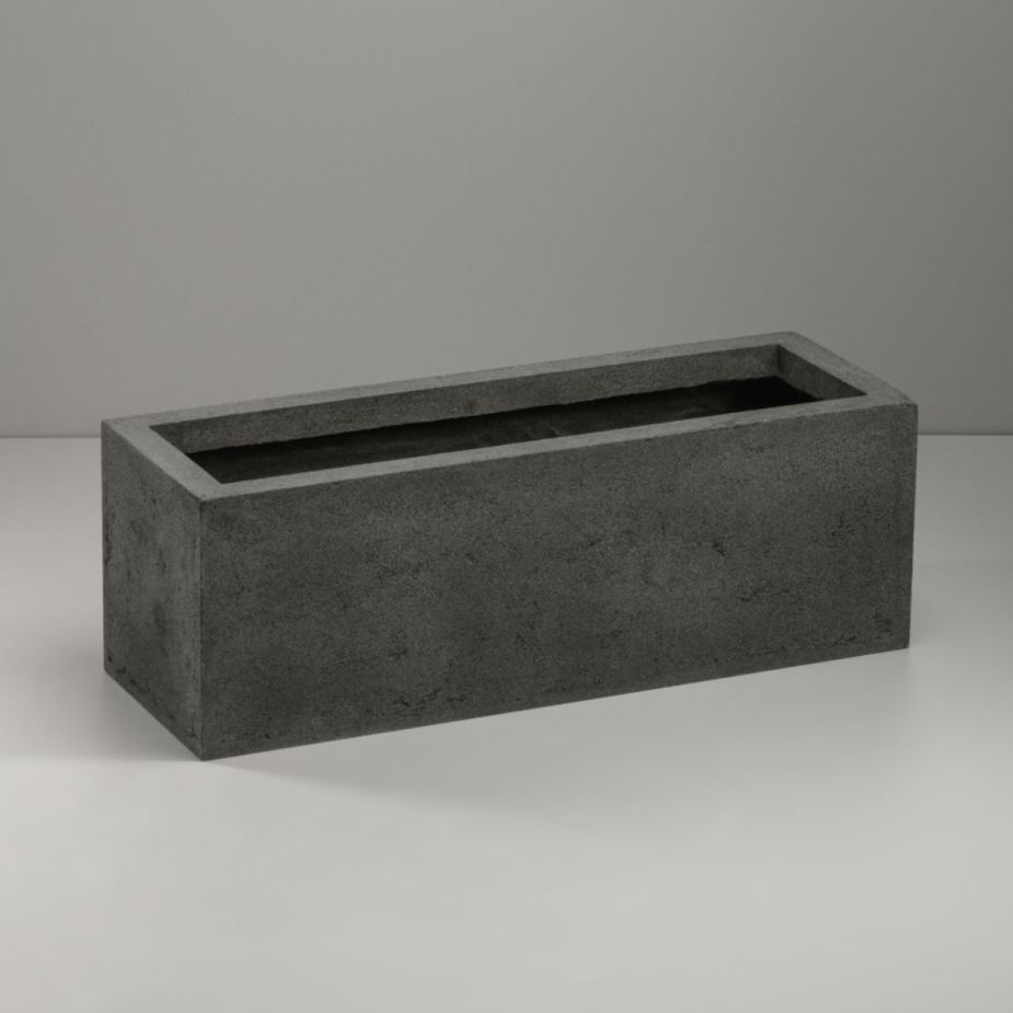 Кашпо напольное «Evabrick Rectangle» из полимербетона для цветов и декоративных растений объёмом 52 литра, размером 30 на 80 см, весом 18 кг, в форме прямоугольника серого цвета.