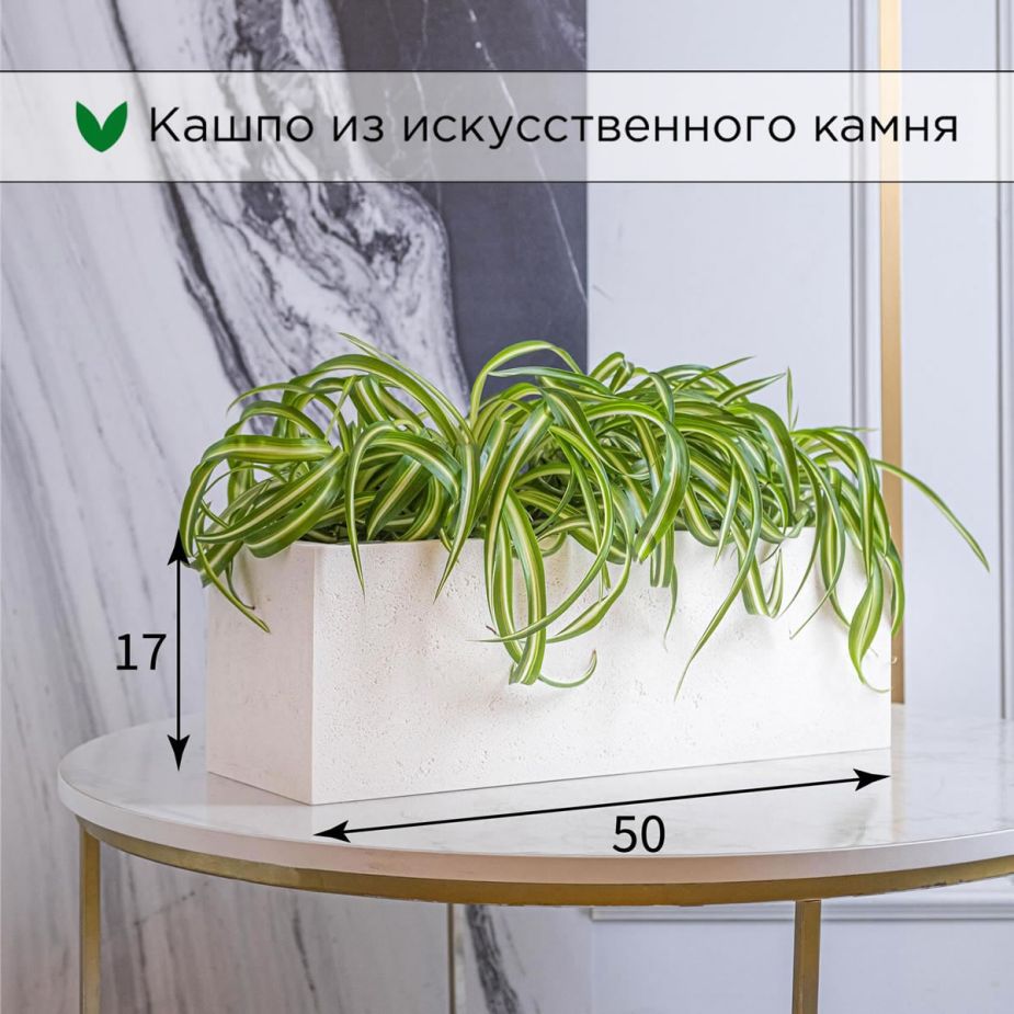 Кашпо напольное «Evabrick Rectangle» из полимербетона для цветов и декоративных растений объёмом 9 литров, размером 17 на 50 см, весом 6 кг, в форме прямоугольника белого цвета.