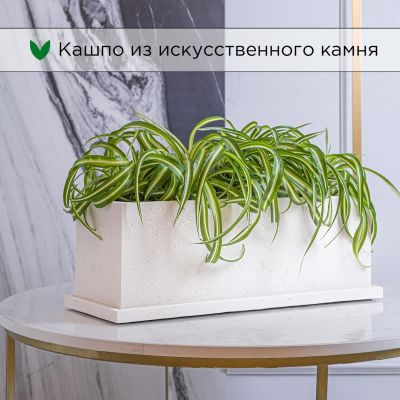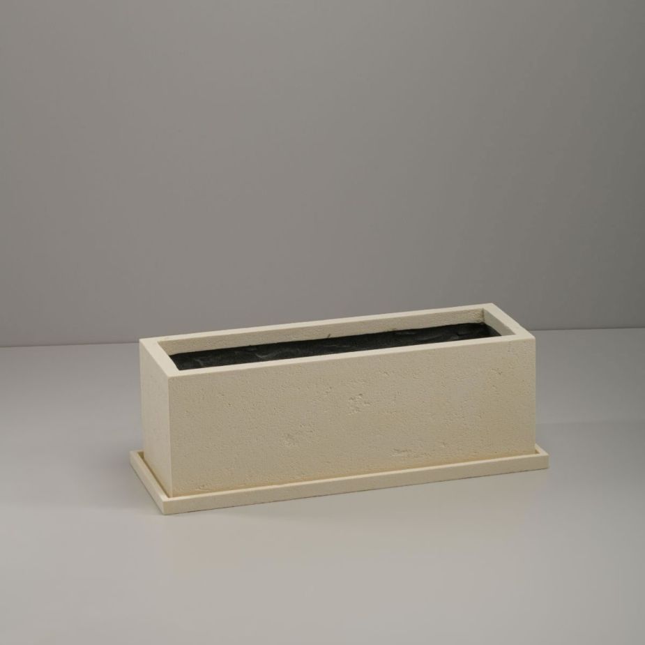 Кашпо напольное «Evabrick Rectangle» из полимербетона для цветов и декоративных растений объёмом 9 литров, размером 17 на 50 см, весом 8 кг, в форме прямоугольника бежевого цвета с поддоном.