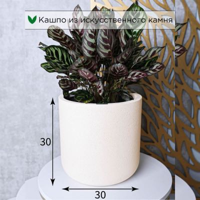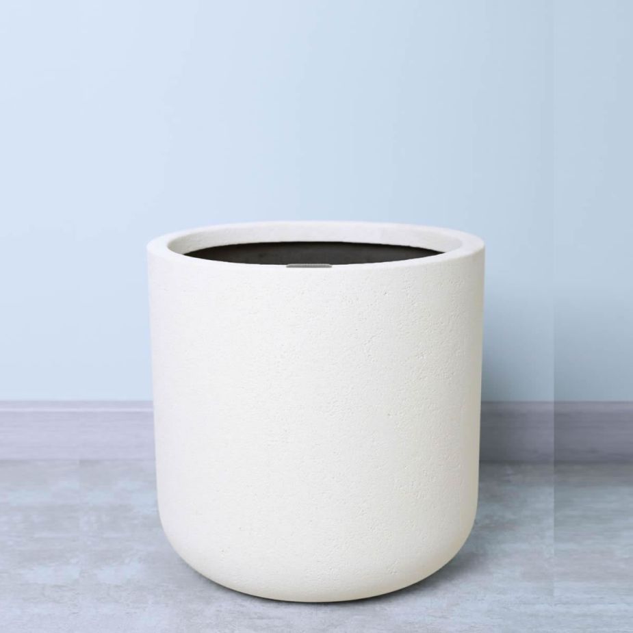 Кашпо напольное «Evabrick Sphere cylinder» из полимербетона для цветов и декоративных растений объёмом 16 литров, размером 30 на 30 см, весом 6 кг, в форме цилиндра бежевого цвета.