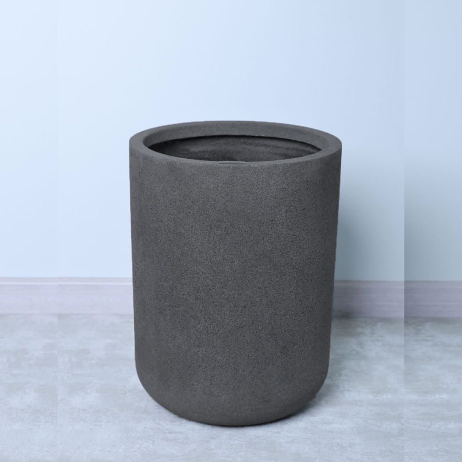 Кашпо напольное «Evabrick Sphere cylinder» из полимербетона для цветов и декоративных растений объёмом 22 литра, размером 40 на 30 см, весом 8 кг, в форме цилиндра серого цвета.