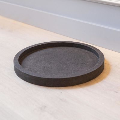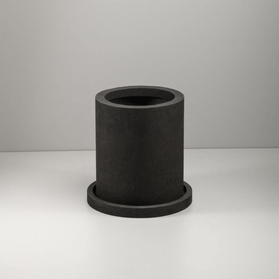 Поддон для напольного кашпо «Evabrick Cylinder» из полимербетона весом 3 кг, в форме цилиндра чёрного цвета.