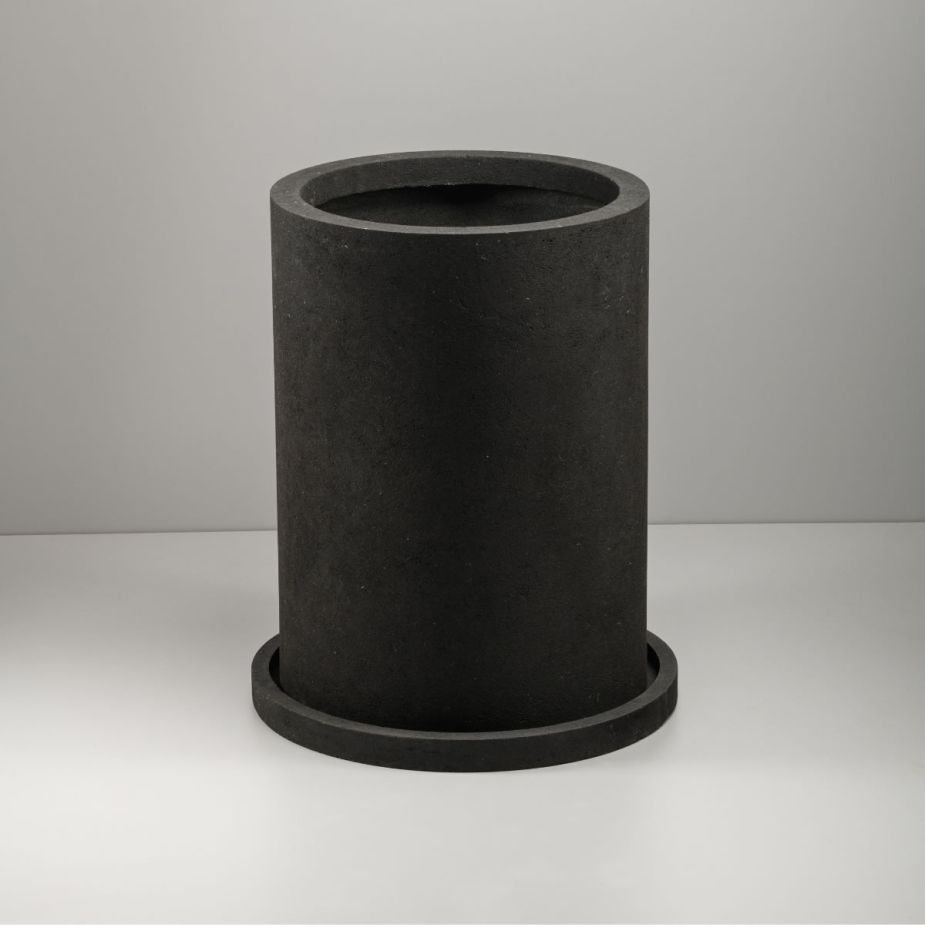 Поддон для напольного кашпо «Evabrick Cylinder» из полимербетона весом 4 кг, в форме цилиндра чёрного цвета.